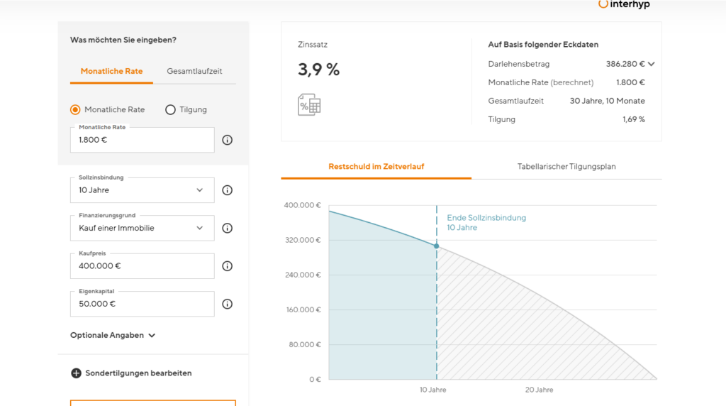 Vergleichen Sie die Zinsen von >500 Darlehnsgebern, wenn Sie kaufen oder nach 10 Jahren umfinanzieren wollen.