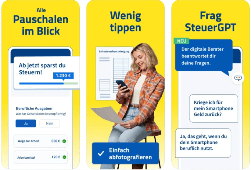 ✔ Software-Unterstützung – Jahres-Abbo Kaufen (ca. 40€), Software runterladen, Belege abfotografieren, ..., Steuern sparen